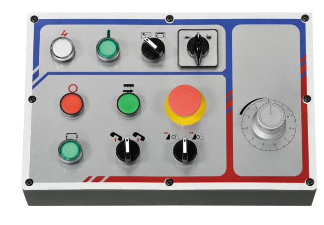 Управління верстатом здійснюється через центральну панель керування. Сила натягу стрічкового полотна встановлюється вручну і визначається показаннями тензометра. Для екстреної зупинки верстата передбачена кнопка аварійного вимкнення та датчик обриву полотна.