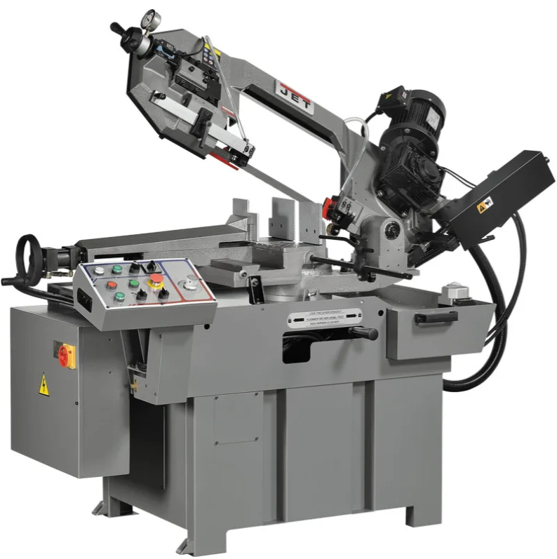 Пильна рама автоматично піднімається гідравлічним приводом після закінчення пиляння і розтискаються губки лещат, залишається тільки пересунути заготовку та заново запустити напівавтоматичний режим пиляння.