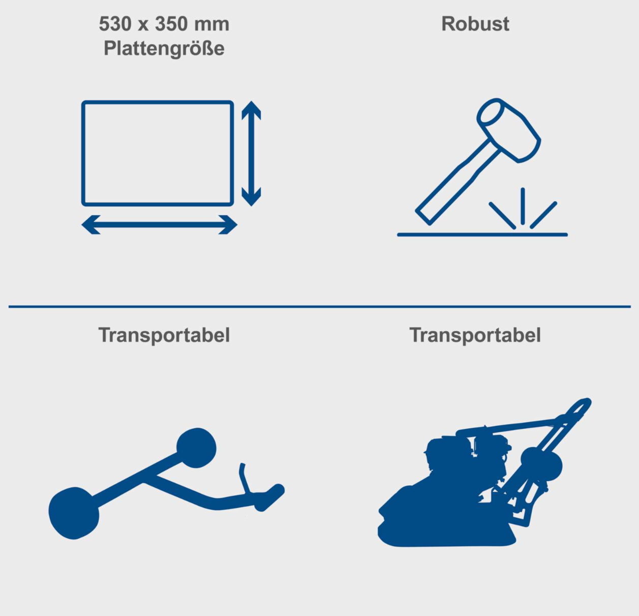 Робоча плита розміром 530х350 мм забезпечує зручність при роботі на різних ділянках, включаючи вузькі зони і важкодоступні місця. Компактні габарити роблять віброплиту маневреною та зручною в управлінні.