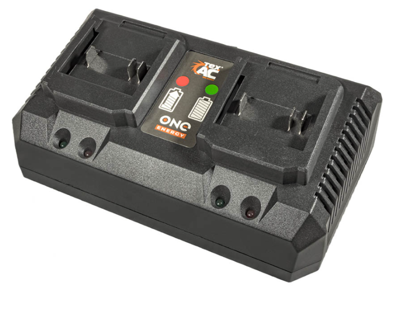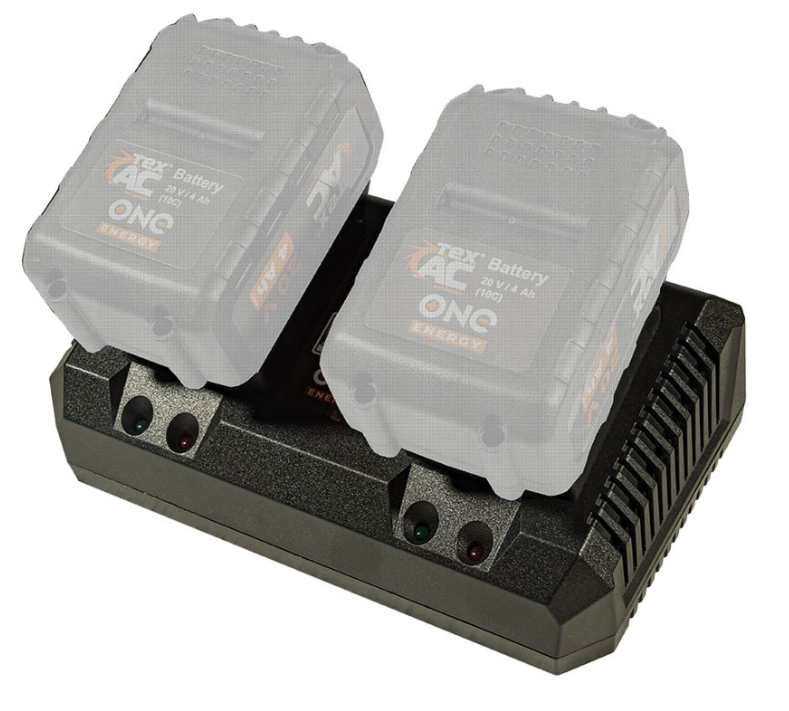 Зарядний пристрій на 2 АКБ Tex.AC TAOE-С2D призначений для швидкої зарядки 20 В акумуляторних батарей, ємністю 2 і 4 Ач. Більш того, наявність двох терміналів дозволяє одночасно заряджати два АКБ із силою струму 4 А на кожен. Відповідно, заряджає акумулятори: