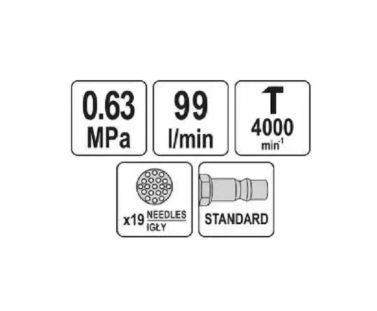 Пневматичний голковий молоток YATO YT-09912 призначений для очищення іржі, зварних швів та листового металу.