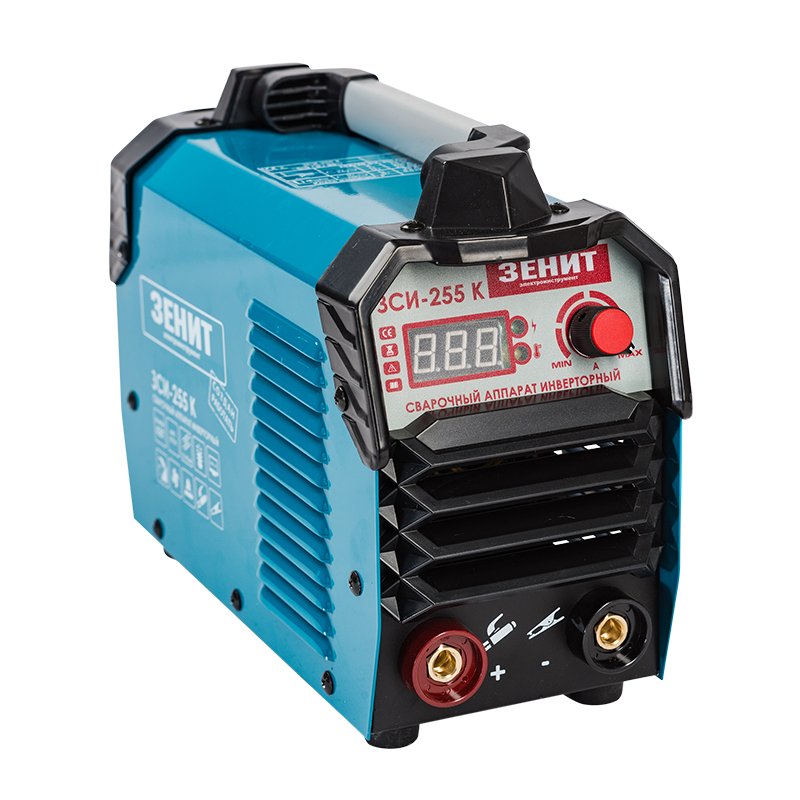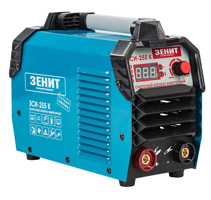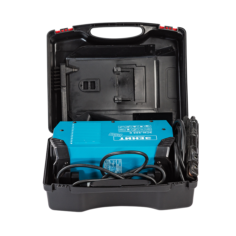 Інверторне зварювання Зеніт ЗСІ-255 До дуже затребуване як в домашньому господарстві, так і на будівельному майданчику або СТО. Завдяки максимальній силі струму 255 ампер, вона дозволяє використовувати електроди до 4 міліметрів. Доступне плавне регулювання зварювального струму, щоб підібрати найкращі умови для конкретної ситуації. Провід кріпиться за допомогою байонетного фіксатора, що прискорює підготовку до виконання завдань. Тривалий режим гарантовано примусовим охолодженням. Функція антизалипання полегшує процес зварювання. Металевий корпус надійно оберігає внутрішні складові. Транспортування полегшується невеликою вагою. Єдина відмінність цієї моделі від ЗСІ-255 – це наявність кейсу.