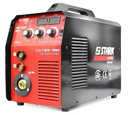 Stark IMT 200 MIG – зварювальний інвертор для роботи ручного напівавтоматичного зварювання по металу, сталі, міді та ін. Потужний мотор в 6 400 Вт для стабільної роботи, а охолодження двигуна за допомогою вентилятора. забезпечує двигуну тривалий термін служби.
